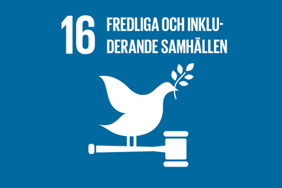 Främja fredliga och inkluderande samhällen för hållbar utveckling, tillhandahålla tillgång till rättvisa för alla samt bygga upp effektiva och inkluderande institutioner med ansvarsutkrävande på alla nivåer